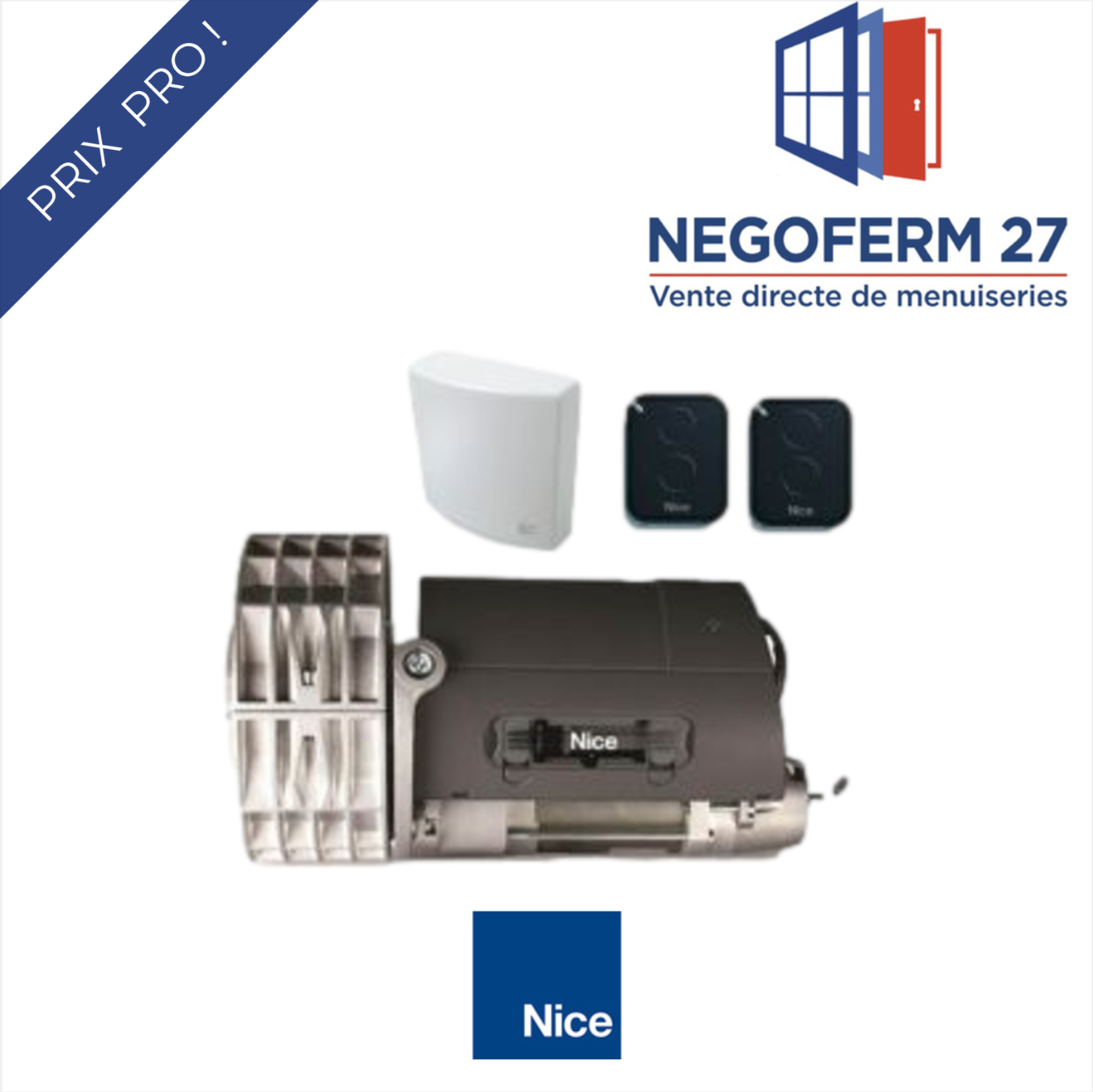 Le kit RN 2040 de NICE est une solution complète pour motoriser un rideau métallique ou une grille d’enroulement équipée d’un arbre à ressorts de compensation. Ce système intègre un moteur irréversible avec frein, un dispositif de débrayage par câble pour la manœuvre de secours et une logique de commande avec ses auxiliaires (télécommandes selon version).