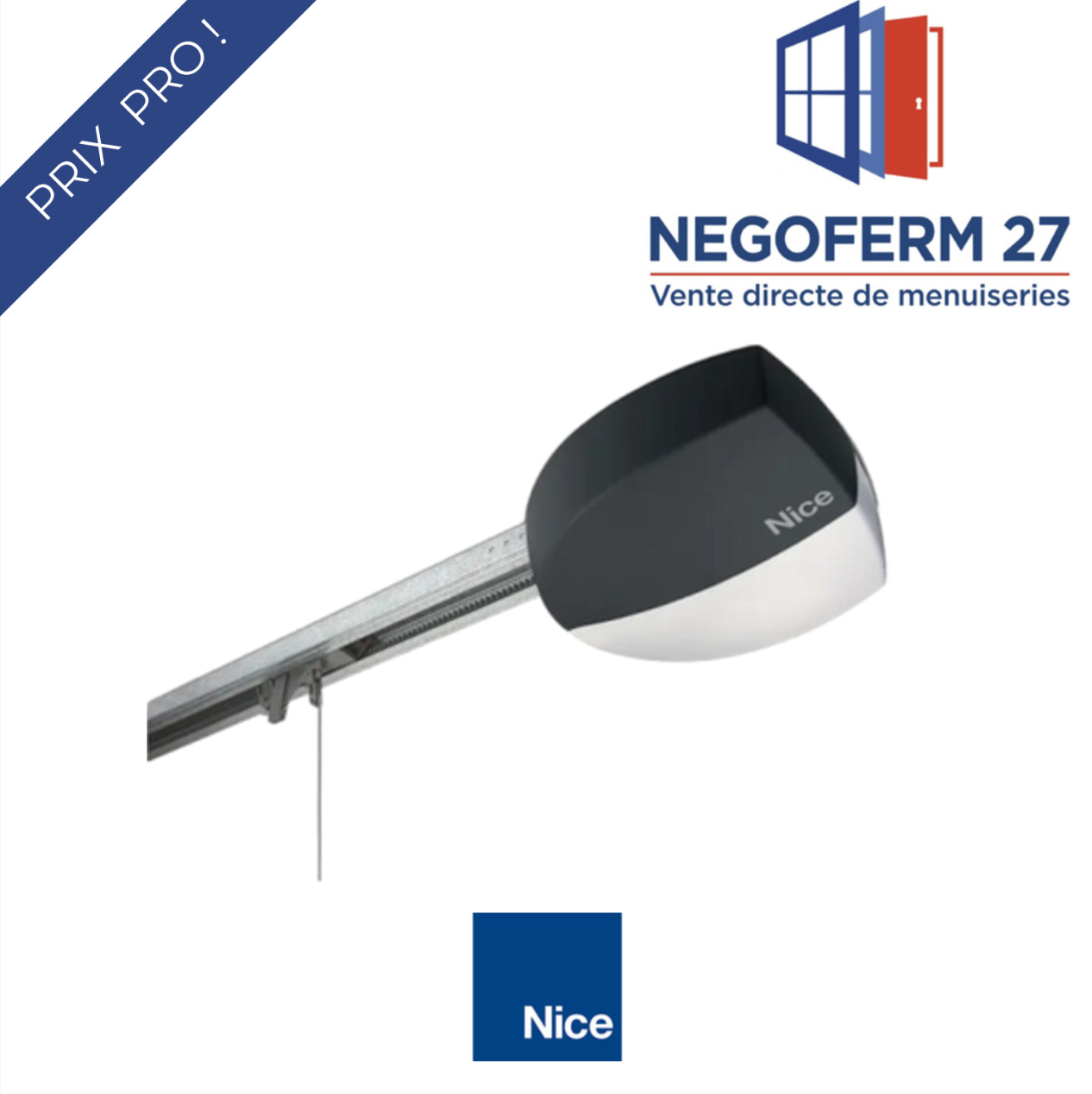 Le kit SPINBUS 40 de NICE est une motorisation résidentielle conçue pour automatiser les portes de garage sectionnelles ou basculantes à débordement.